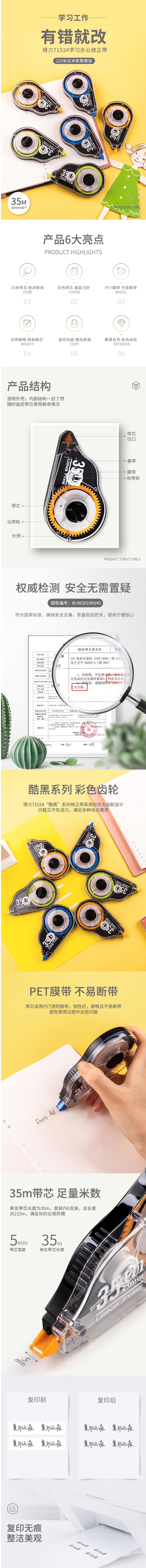 得力(deli) 71524 6個(gè)35m 加大容量修正帶