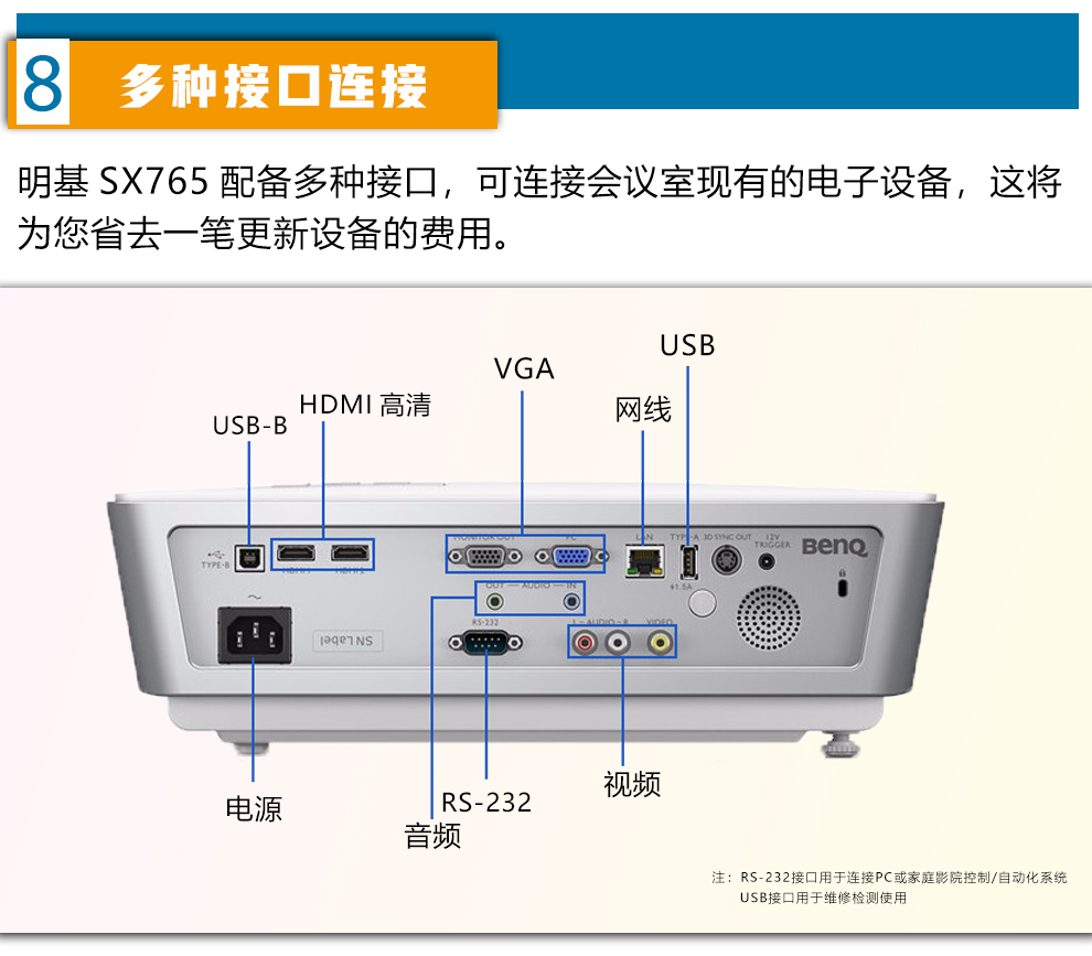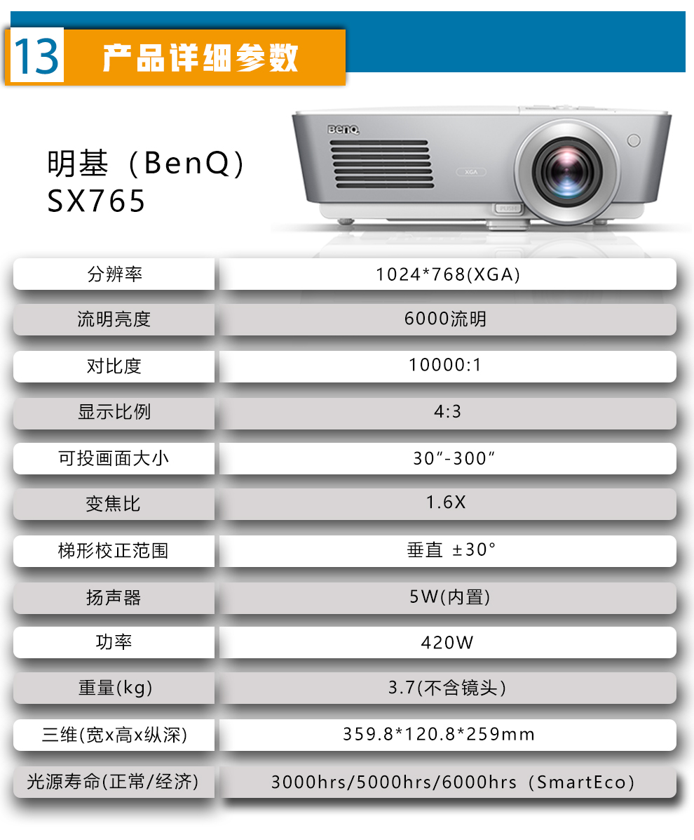 明基(BenQ)SX765 投影儀辦公 工程投影機 商用會議 教育教學(xué) 高亮工程投影 白色 官方標配
